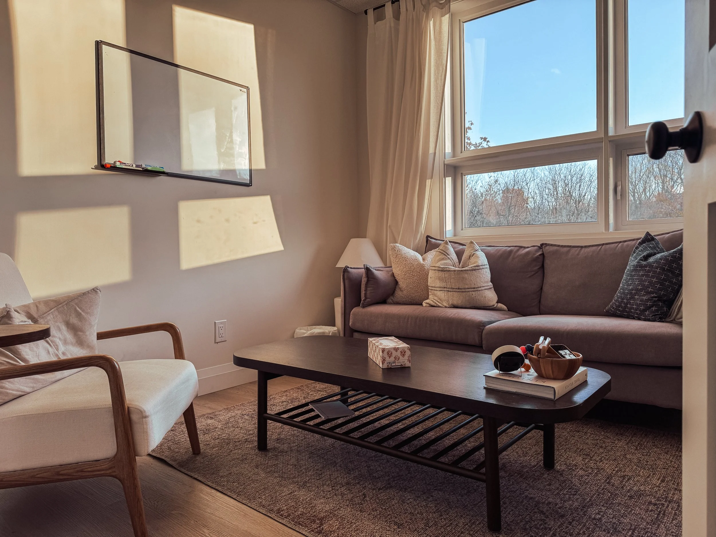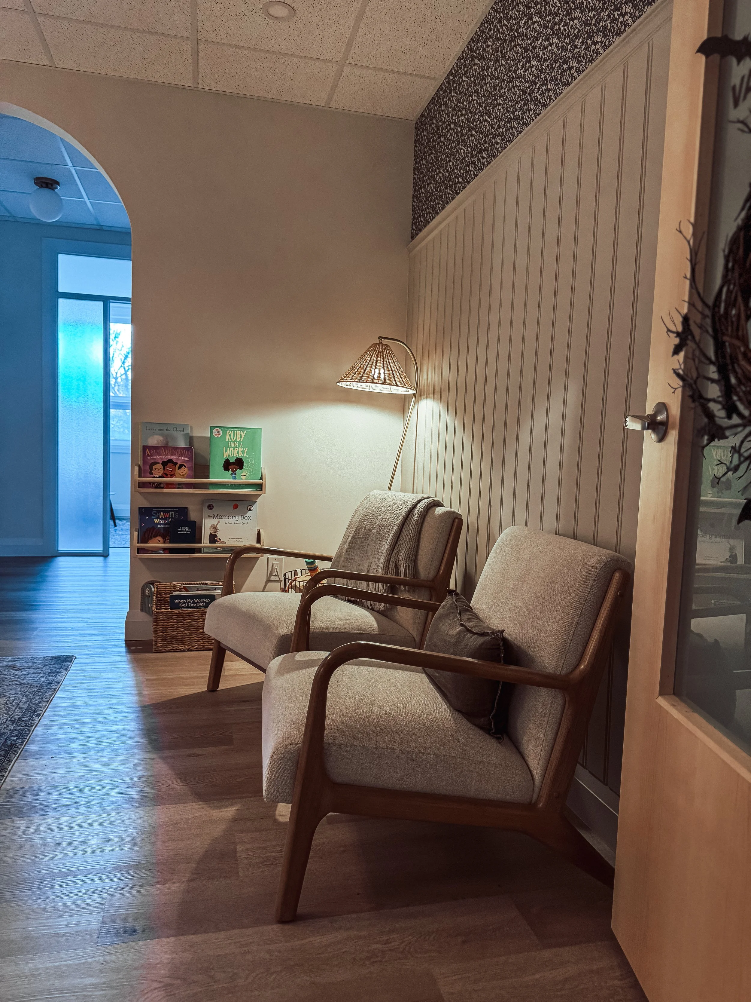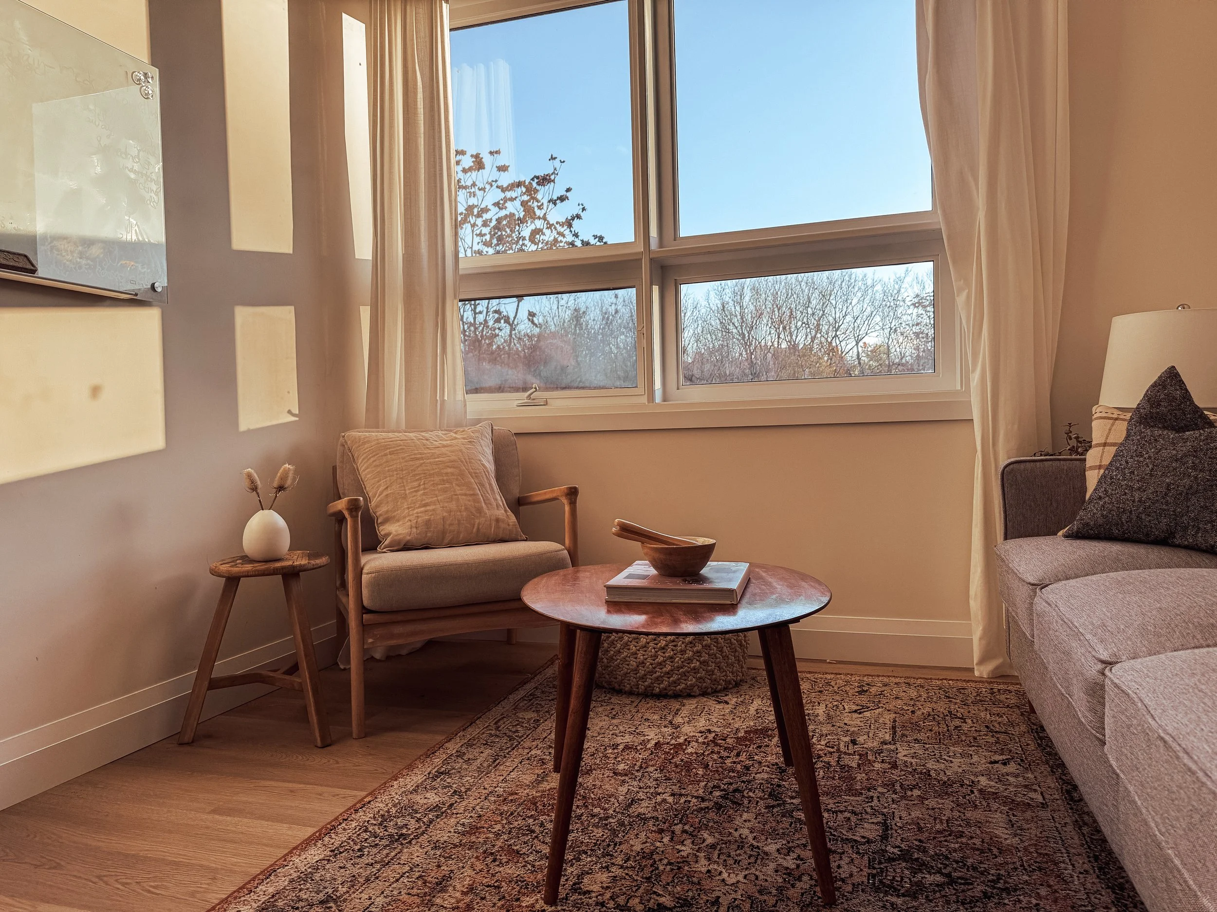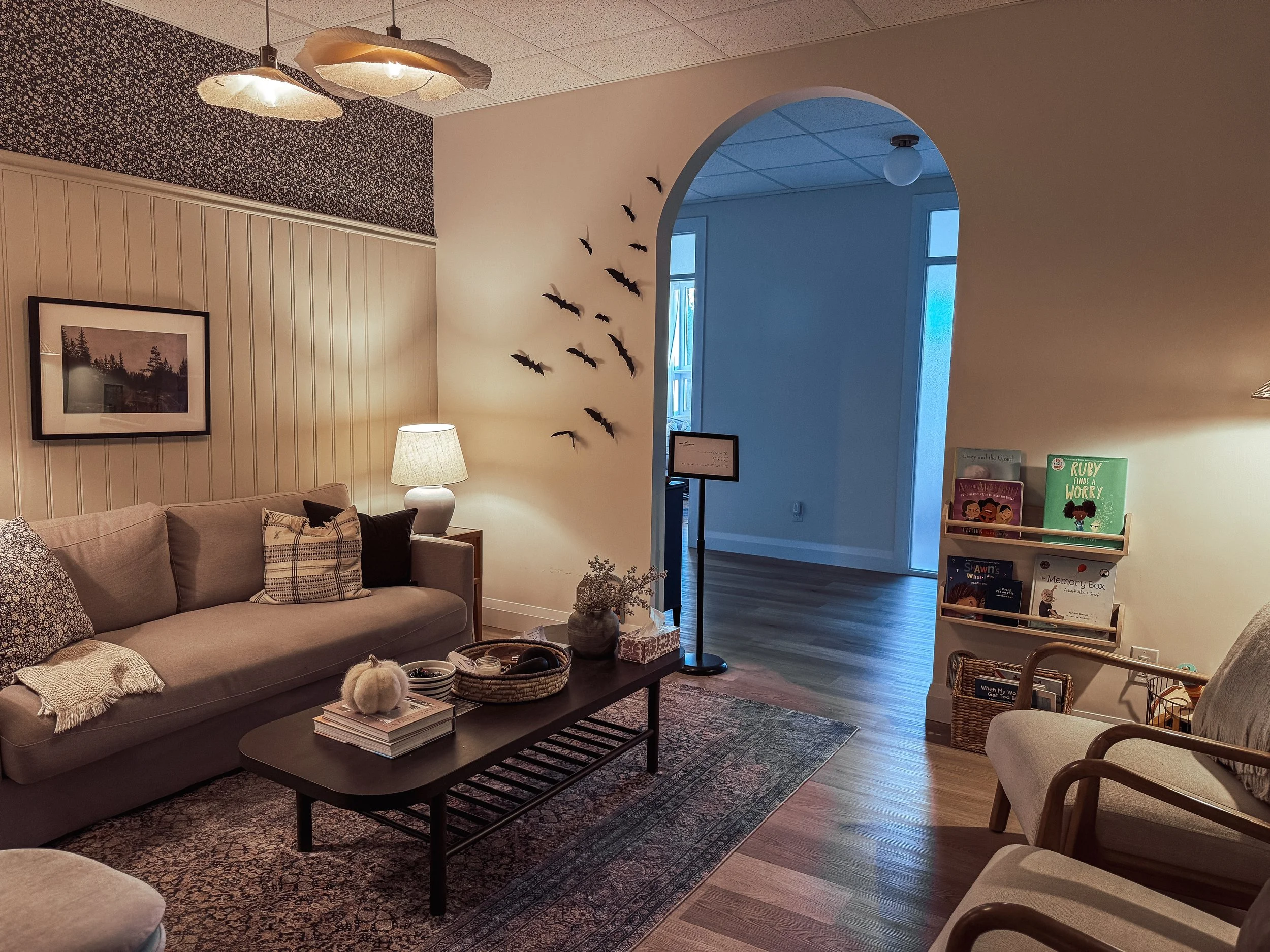 Established in 2015, VCC moved in 2024 to a brand-new space thoughtfully designed with your comfort and well-being in mind. Adults and teens can relax with a tea or coffee in a warm, living room–style waiting area and thoughtfully furnished client rooms. Children enjoy a curated kids’ library and toy area, special touches like starting sessions with snacks, visiting the prize station, and earning freezies on particularly brave days. We’ve worked hard to create a space where adults, adolescents, children, and their families feel safe and seen (and well-fed and caffeinated)!
